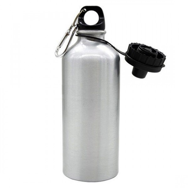 Бутылка - фляжка спортивная с поилкой алюминиевая 500 мл (серебро) с печатью изображения