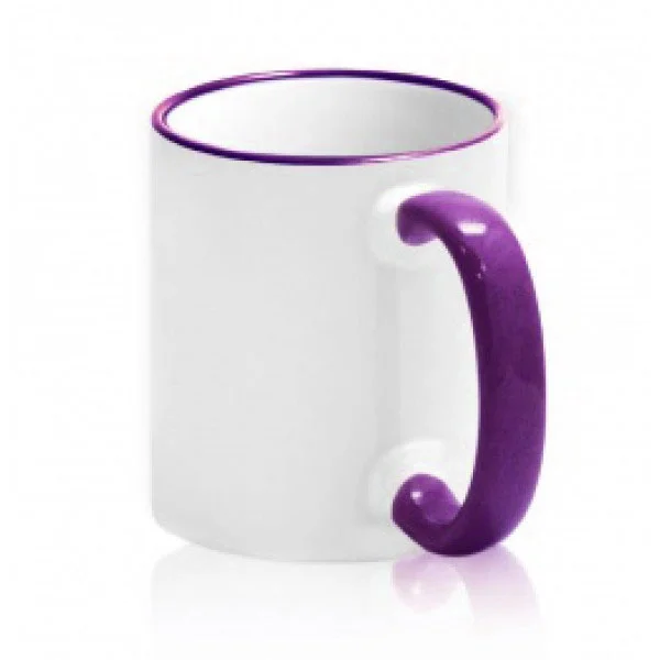 Кружка с ФИОЛЕТОВЫМ ОБОДКОМ и ФИОЛЕТОВОЙ РУЧКОЙ предназначена для нанесения любого изображения сублимационными чернилами. Специально нанесенное покрытие позволяет создавать четкие и долговечные изображения. Кружка служит не только бюджетным подарком и уникальным сувениром, но и прекрасным рекламным носителем.