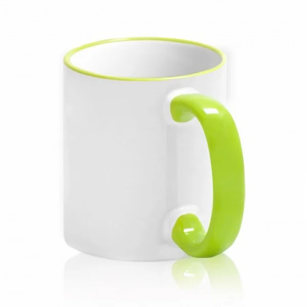 Кружка с САЛАТОВЫМ ОБОДКОМ и САЛАТОВОЙ РУЧКОЙ предназначена для нанесения любого изображения сублимационными чернилами. Специально нанесенное покрытие позволяет создавать четкие и долговечные изображения. Кружка служит не только бюджетным подарком и уникальным сувениром, но и прекрасным рекламным носителем.
