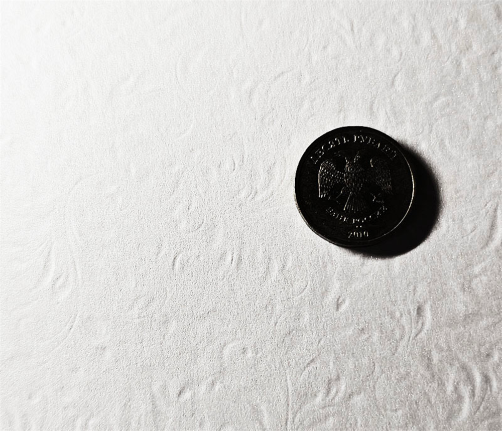 - Шершавый белый двухсторонний картон с тиснением под старинные русские орнаменты и переливающимся цветом – легкие отблески серебра, золота и светло-зеленого.